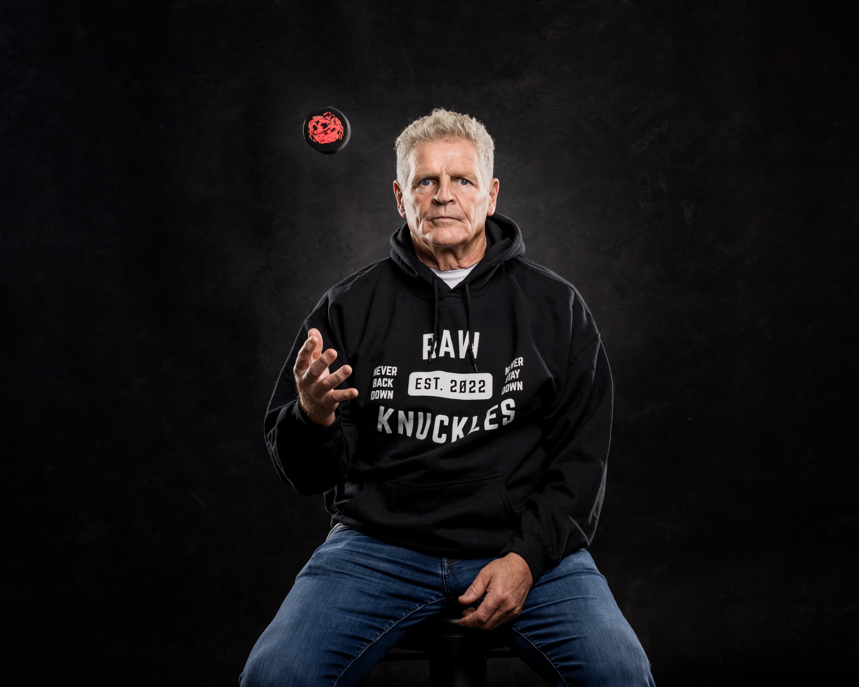 Raw Knuckles Never Stay Down Hockey Puck