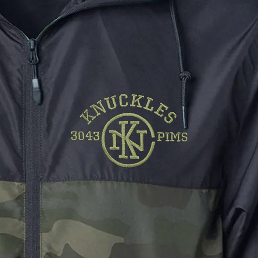 Knuckles Brand Lightweight Windbreaker, Black/Forest Camo